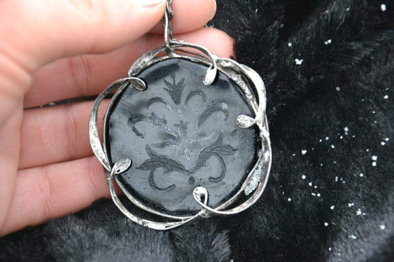 Ozdobny naszyjnik z grawerowanym szkłem.