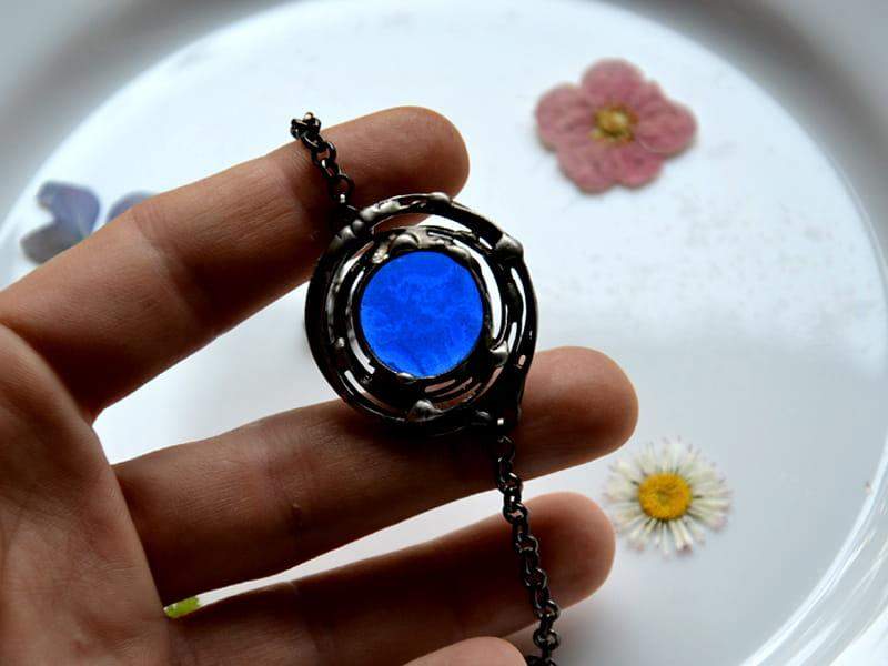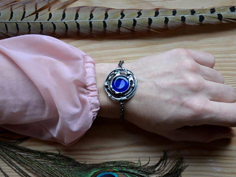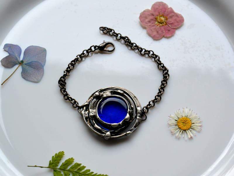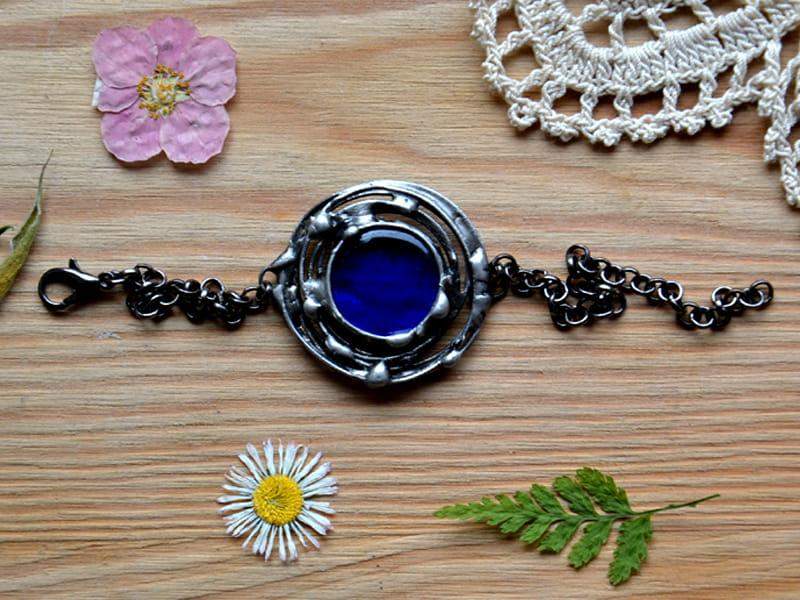 Unikatowa, rustykalna bransoletka ze szkłem w pięknym, głębokim kolorze.