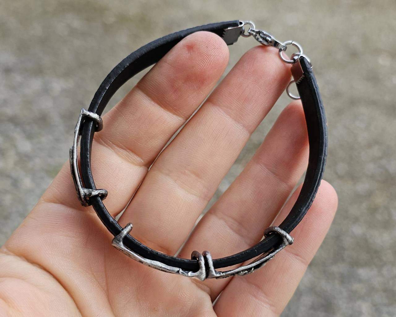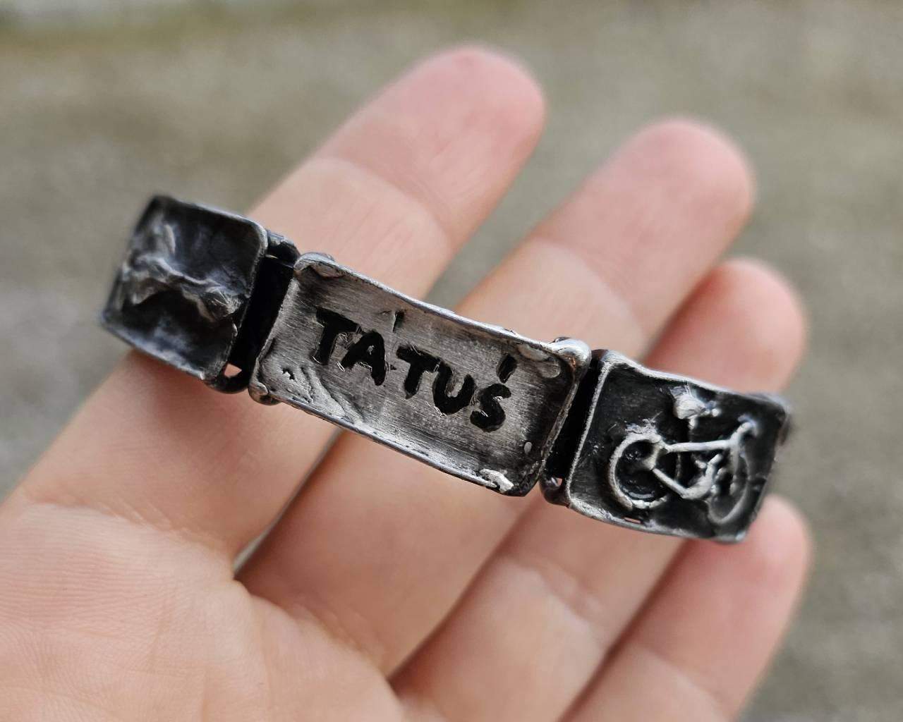 Bransoletka z, zamkniętymi w szkle, dostarczonymi przez klientkę, pamiątkami o znaczeniu sentymentalnym. Rustykalna oprawa wykonana z ekologicznej cyny stylizowanej na kolor srebrny lub kolor ciemnego srebra. Jeśli chcesz zamówić podobną biżuterię pełną swoich wspomnień, proszę o kontakt :)