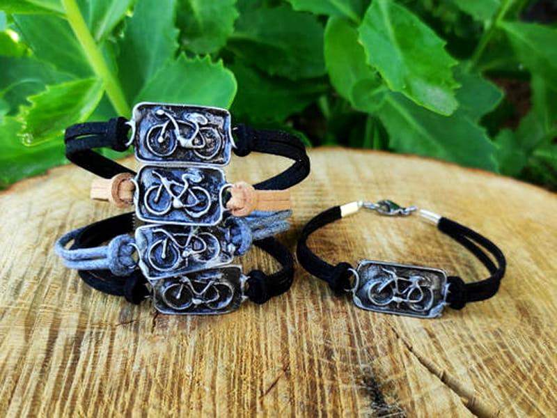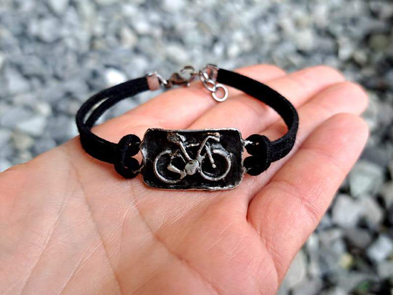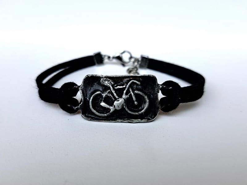 Bransoletka z rowerem na zamszowym rzemieniu Bransoletka będzie idealnym dodatkiem dla rowerzystów.