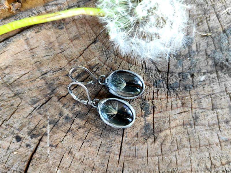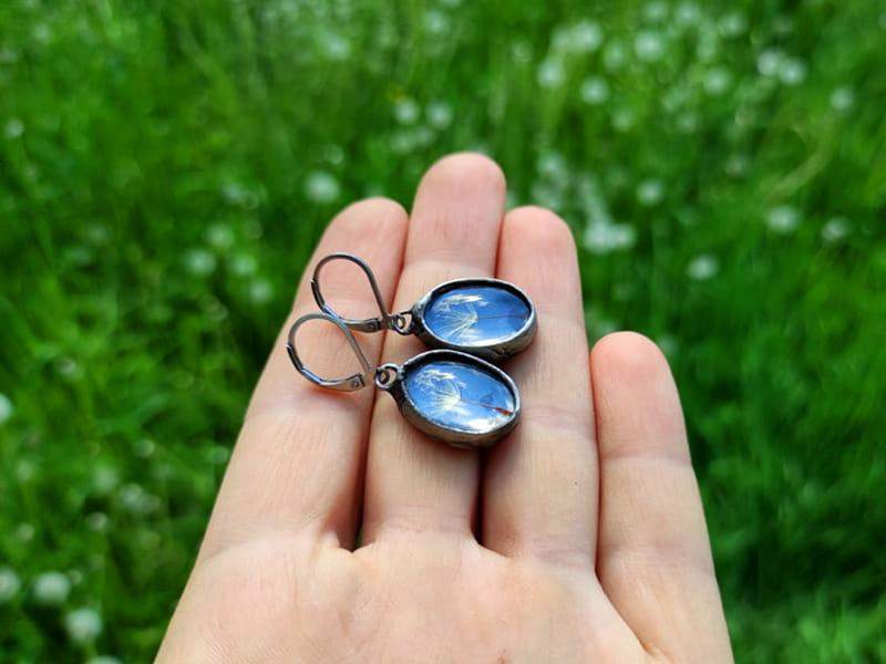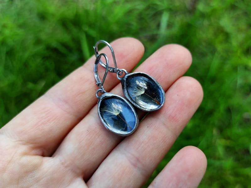 Romantyczne kolczyki z nasionami dmuchawca zamkniętymi w szkle.