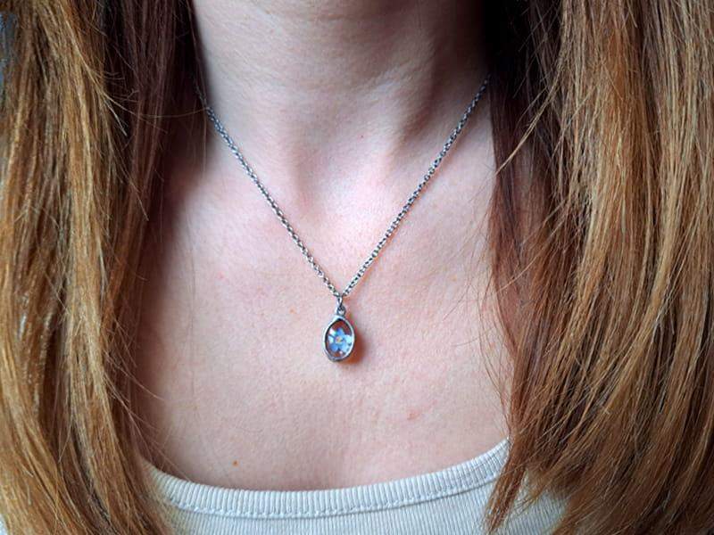 Delikatny naszyjnik z zamkniętą w szkle niezapominajką.
