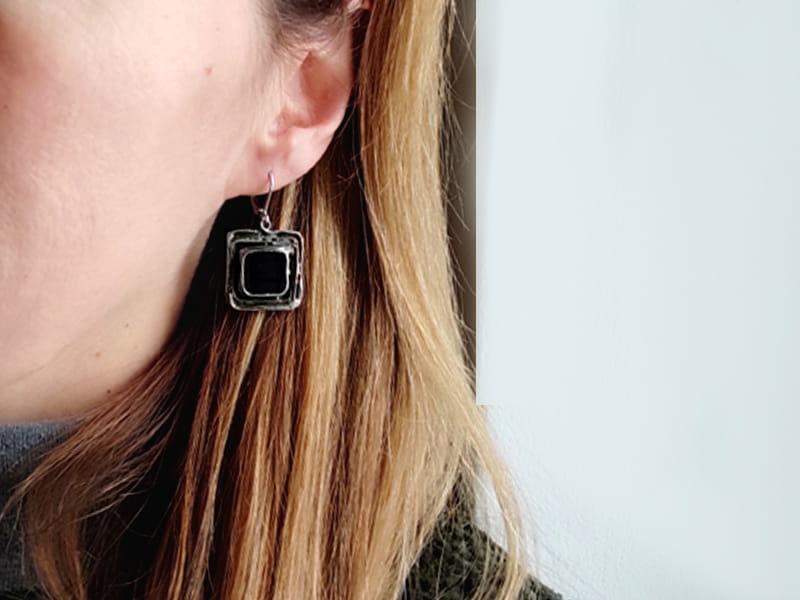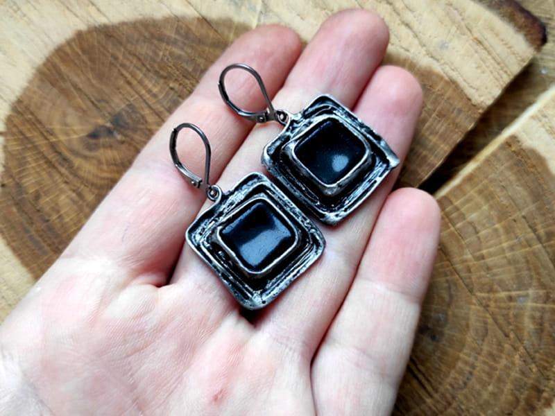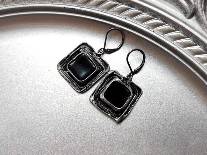 Unikatowe, rustykalne, czarne kolczyki.