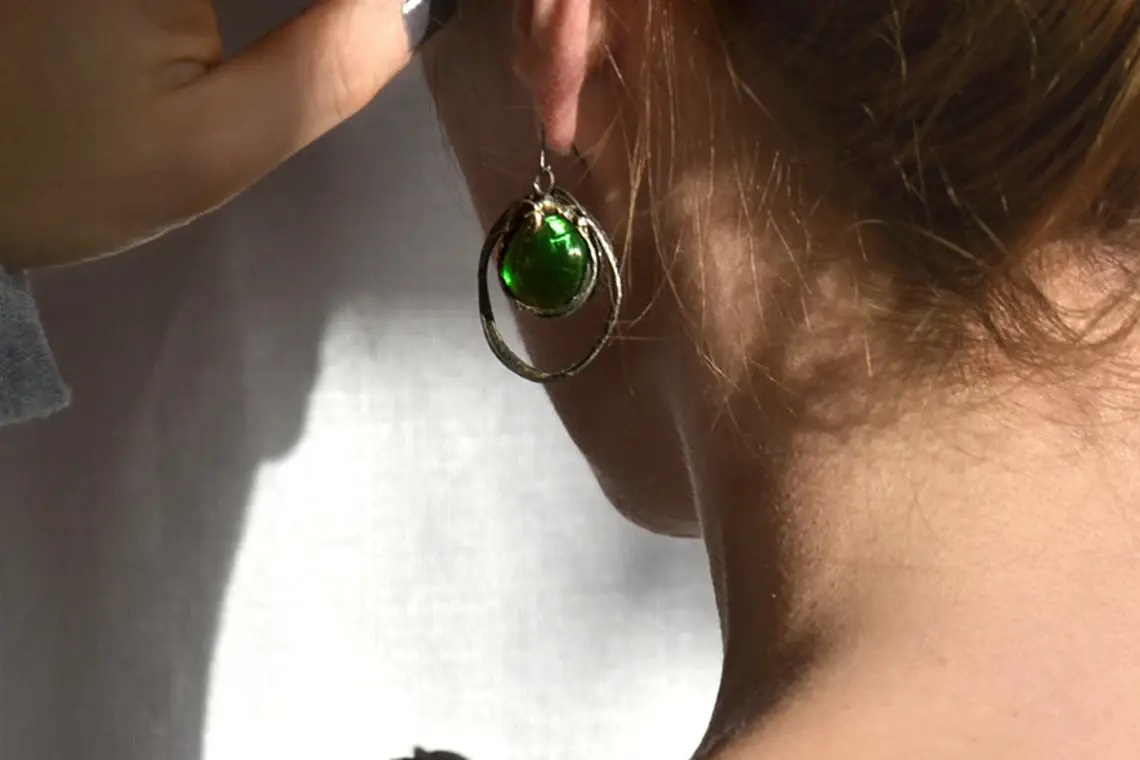 Ciekawe kolczyki z zielonymi szkiełkami