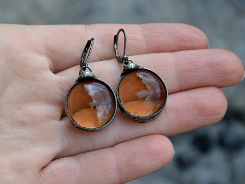 Niepowtarzalne, lekkie kolczyki z miodowym szkłem.
