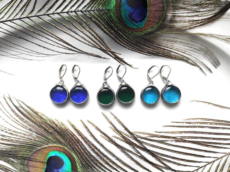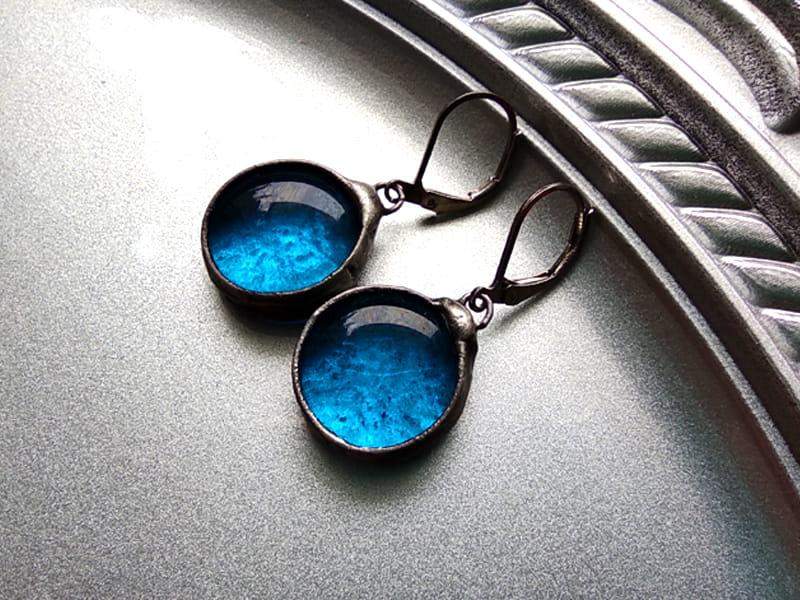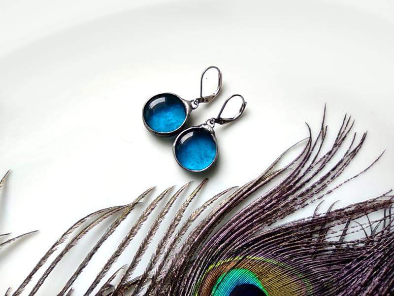 Rustykalne, lekkie kolczyki z turkusowym szkłem.