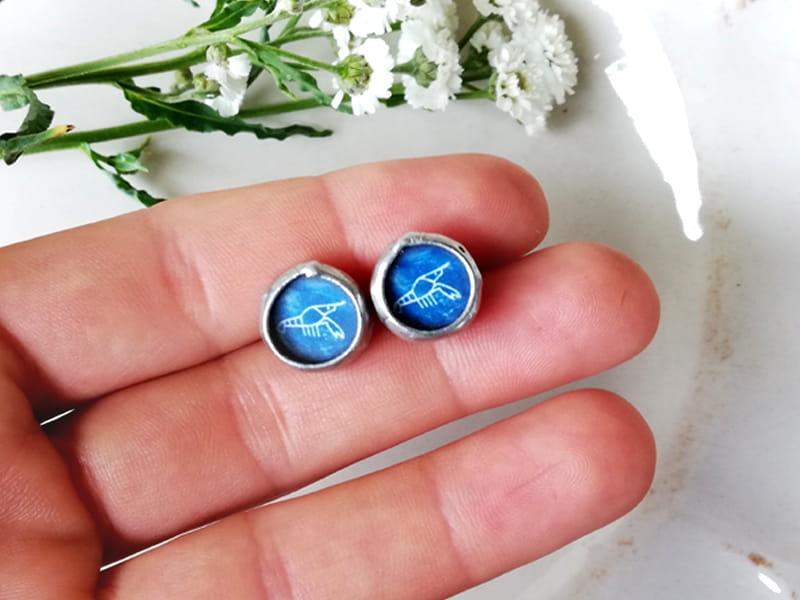 Kolczyki wkrętki z wizerunkiem langusty (symbol "Langusty Na Palmie" Ojca Adama Szustaka). Rustykalna oprawa wykonana z ekologicznej cyny w kolorze srebrnym. Średnica kolczyka to ok. 1 cm. Biżuteria w 100% wykonana ręcznie, poszczególne sztuki mogą się minimalnie różnić.