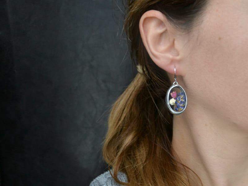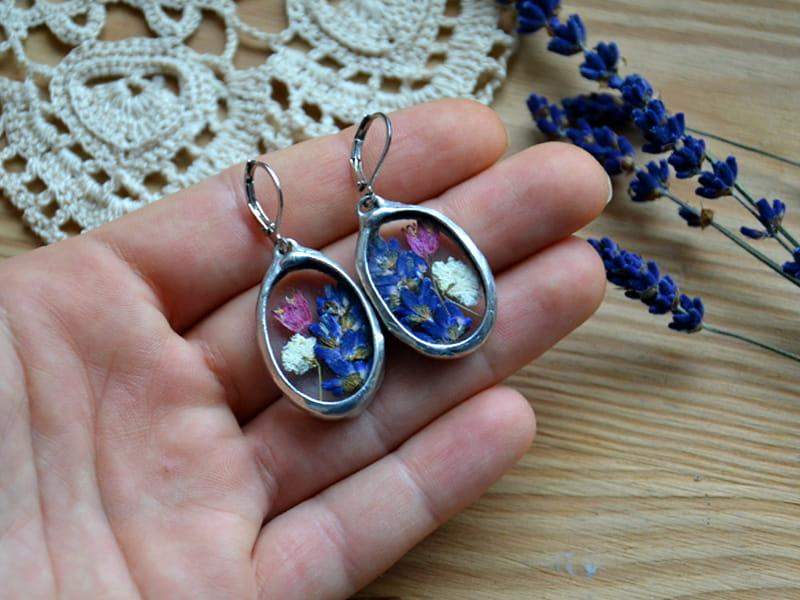 Romantyczne kolczyki z kwiatami zamkniętymi w szkle.