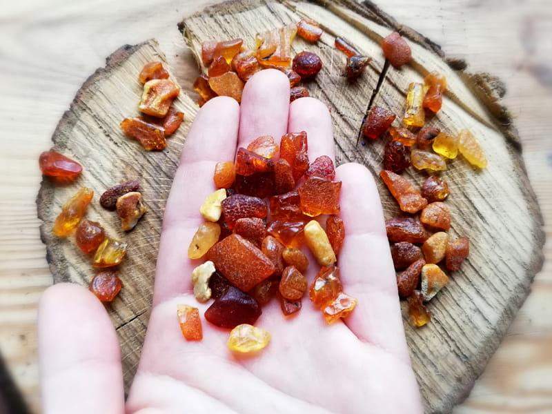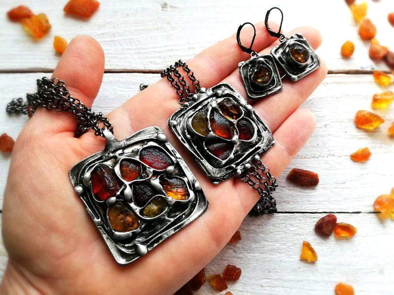Komplet biżuterii z bursztynem.