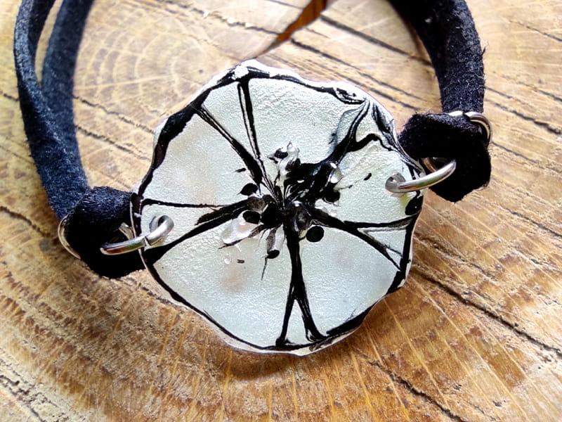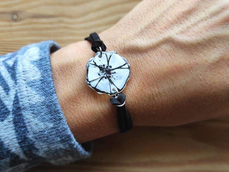 5. Kwiatowa bransoletka perłowy mak (wykończenia z naturalnego rzemienia i stali chirurgicznej)