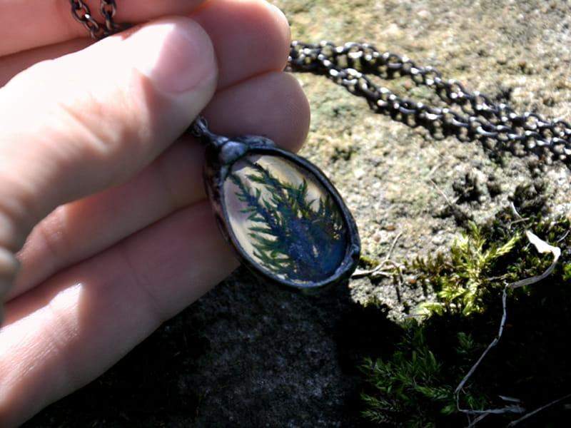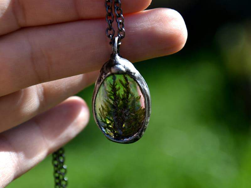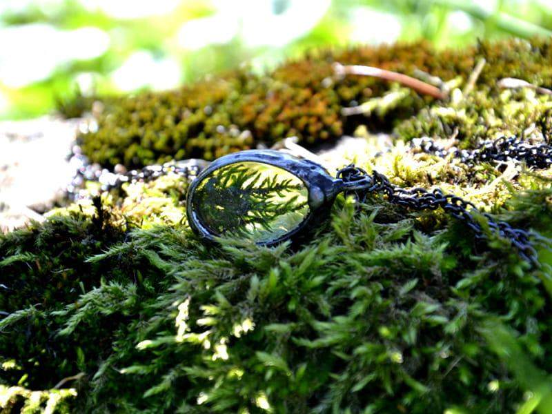Delikatny, romantyczny naszyjnik z mchem zamkniętym w szkle.