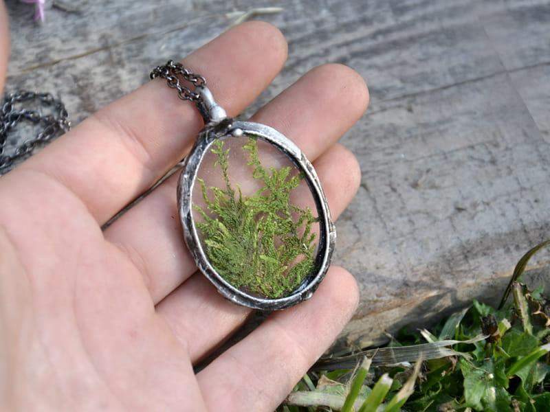 Wisior z zamkniętym w szkle mchem.