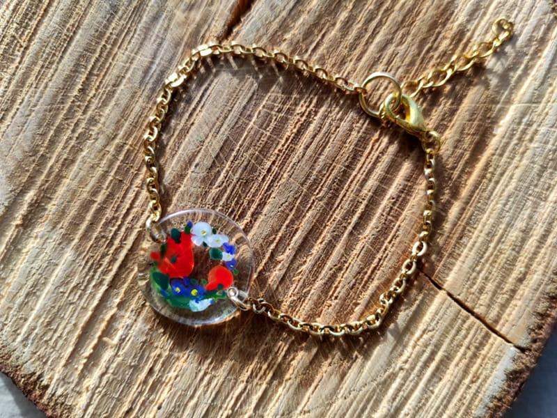 Urocza bransoletka z namalowanym wiankiem niezapominajek