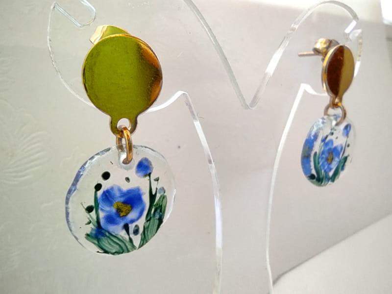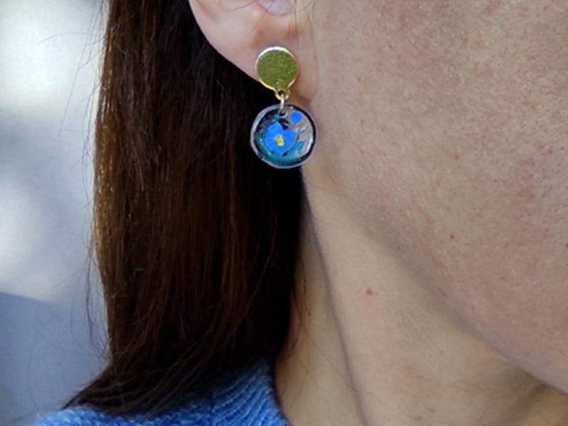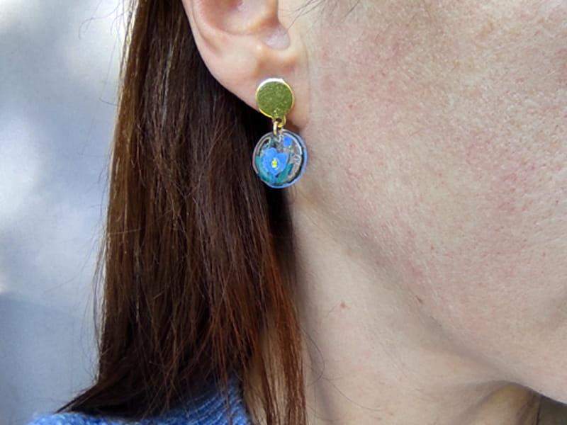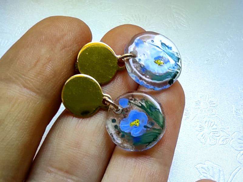 Artystyczne kolczyki z namalowanymi niezapominajkami