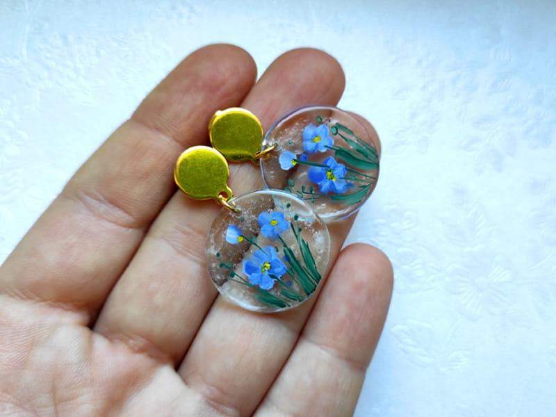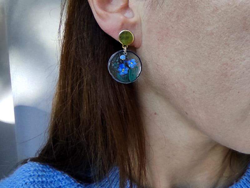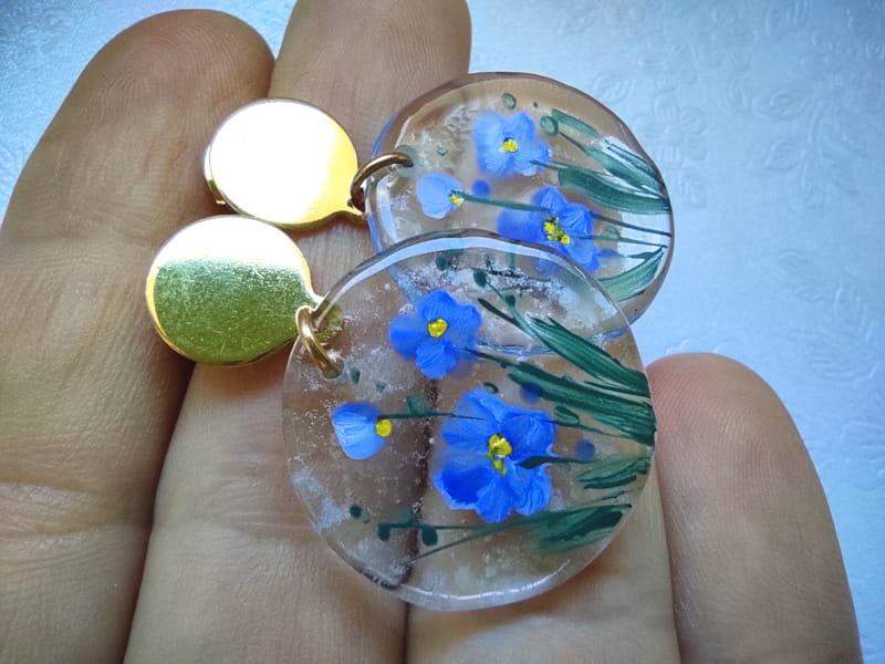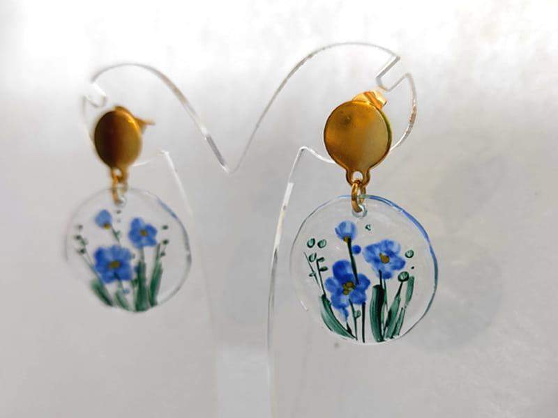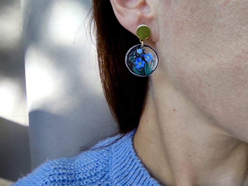 Artystyczne kolczyki z namalowanym wiankiem niezapominajek