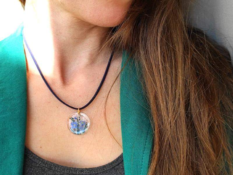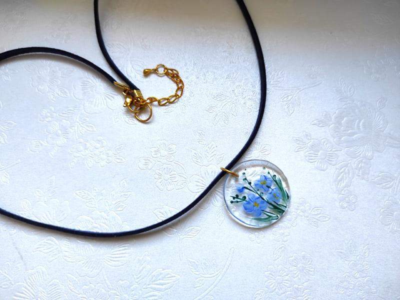 Uroczy naszyjnik z namalowanymi niezapominajkami
