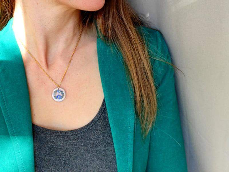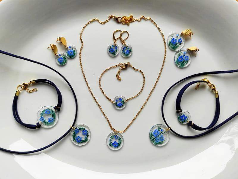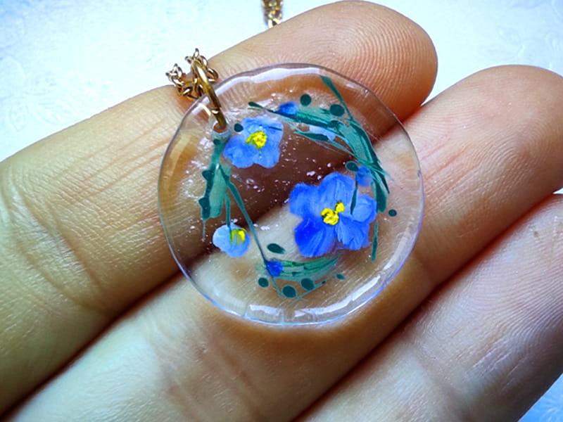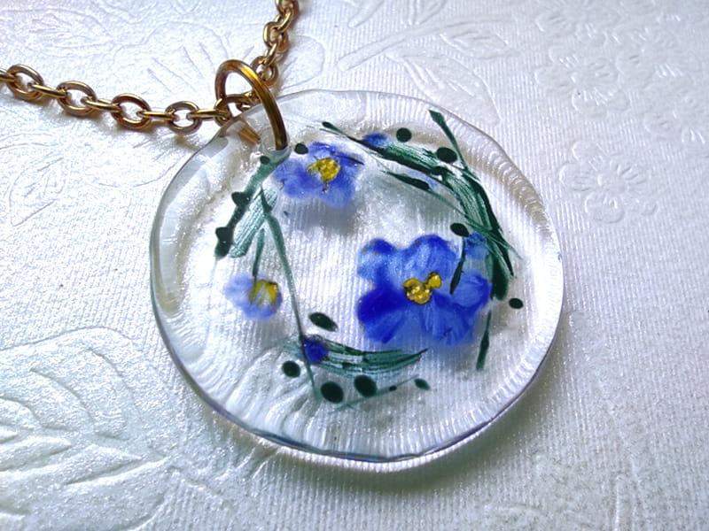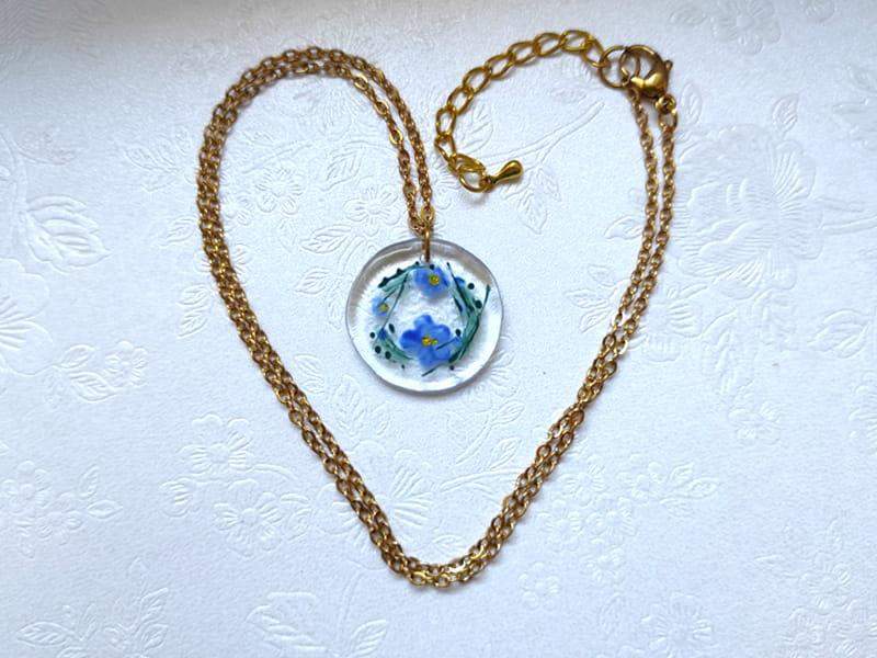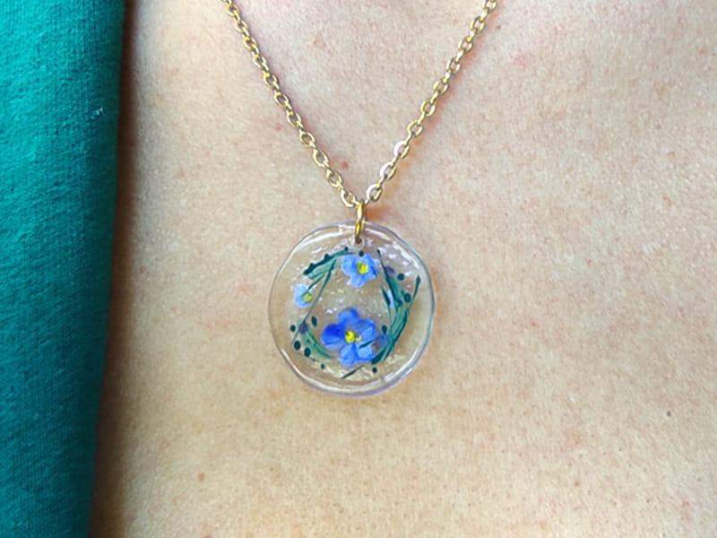 Uroczy naszyjnik z namalowanymi niezapominajkami