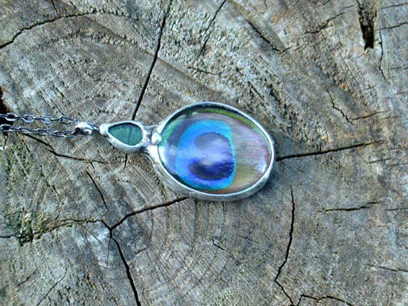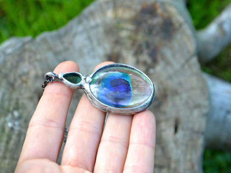 Niepowtarzalny naszyjnik z pawim piórem.