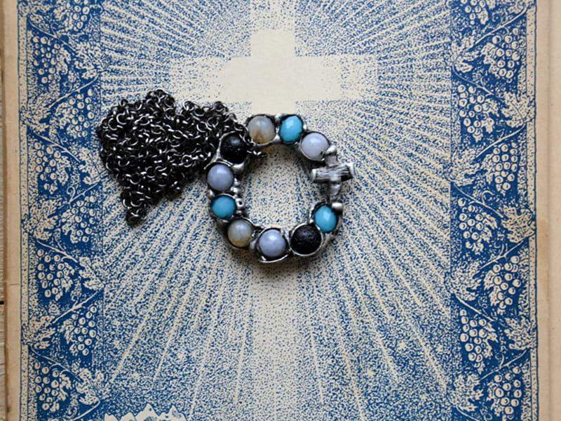 Naszyjnik z dziesiątkiem różańca wykonanym z kamieni naturalnych.