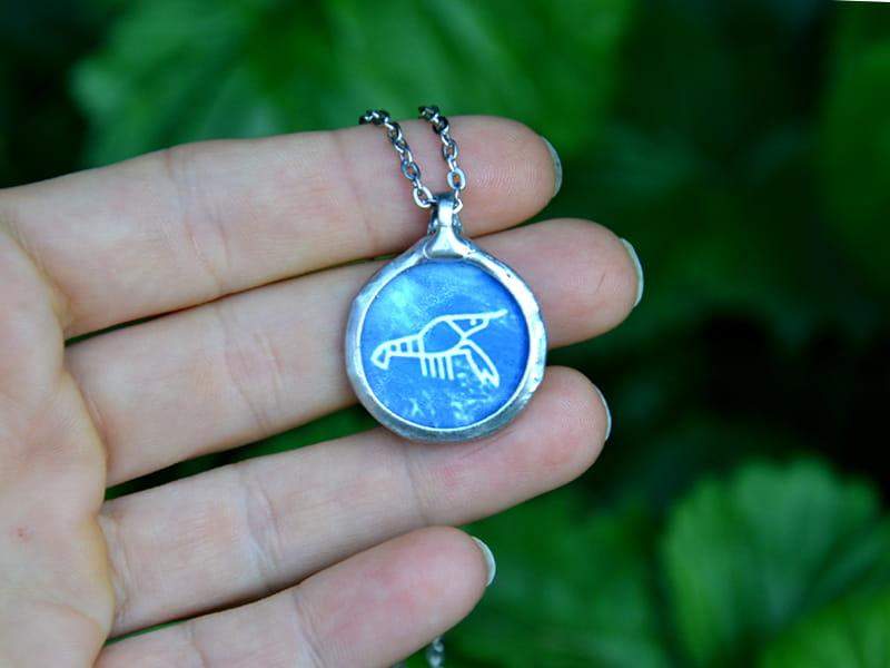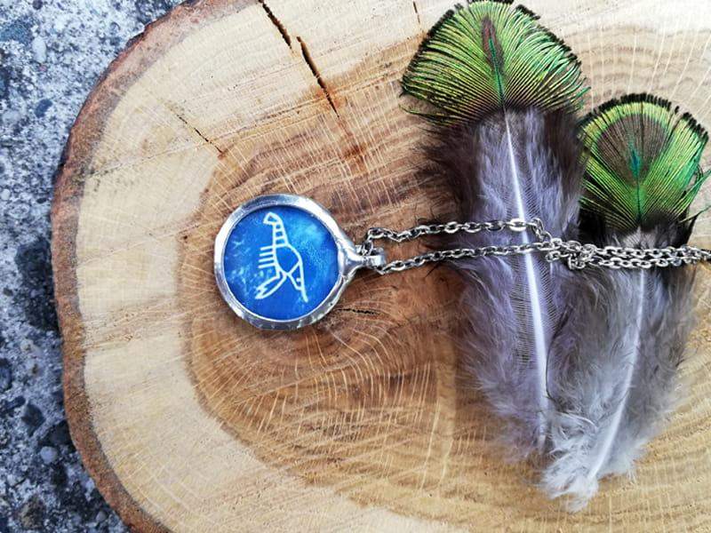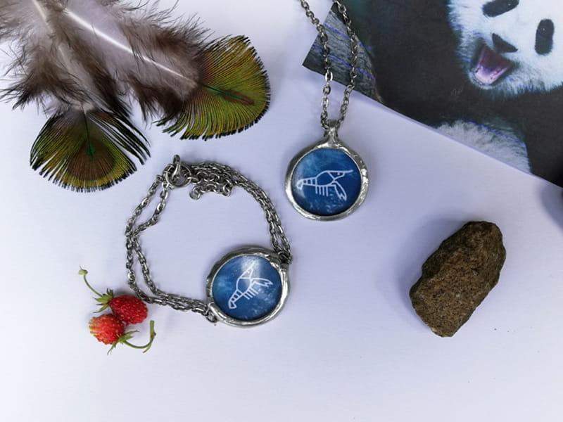 Naszyjnik z wizerunkiem langusty (symbol "Langusty Na Palmie" Ojca Adama Szustaka). Rustykalna oprawa wykonana z ekologicznej cyny w kolorze srebrnym. Średnica wisiora to ok. 2,5 cm. Łańcuszek w kolorze ciemnego srebra o długości 45 cm. Biżuteria w 100% wykonana ręcznie, poszczególne sztuki mogą się minimalnie różnić.
