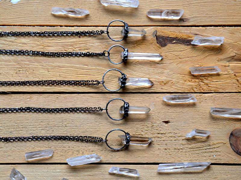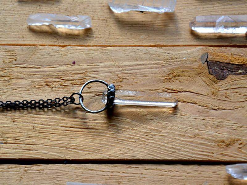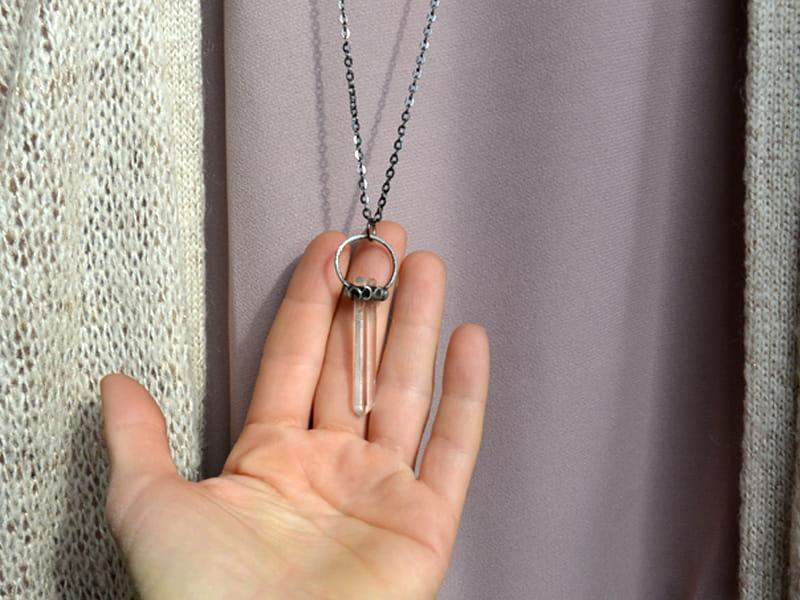 Niepowtarzalny naszyjnik z surowym kryształem górskim.