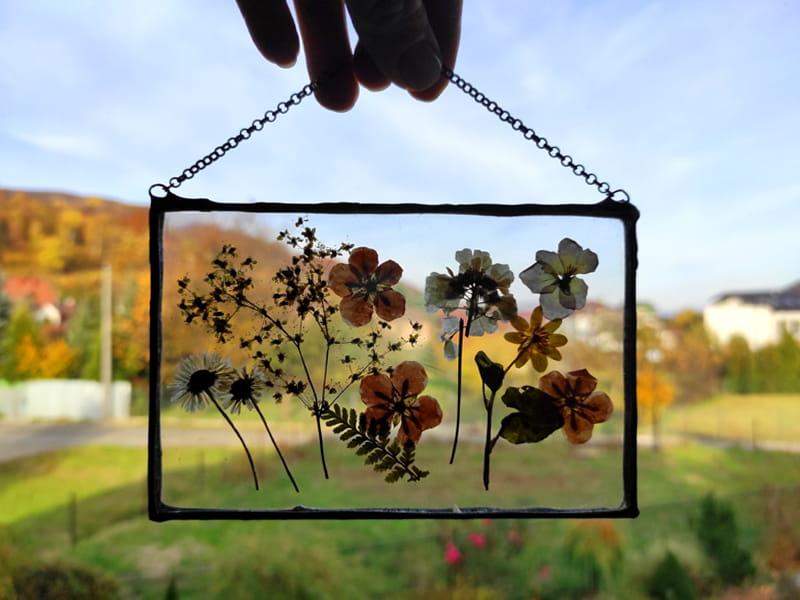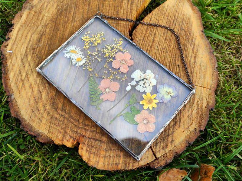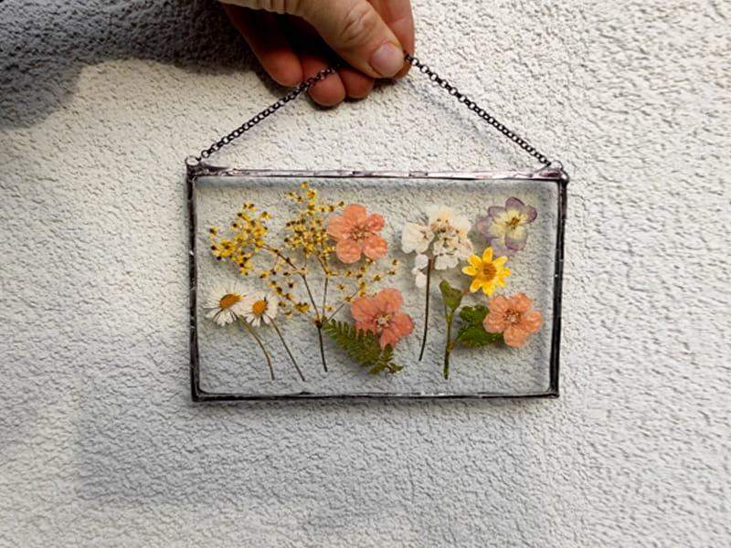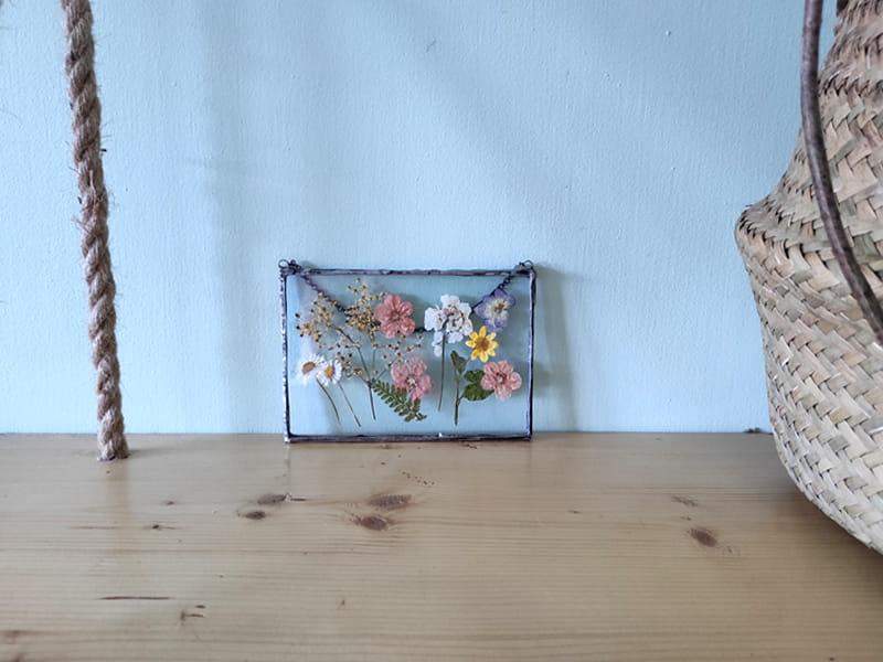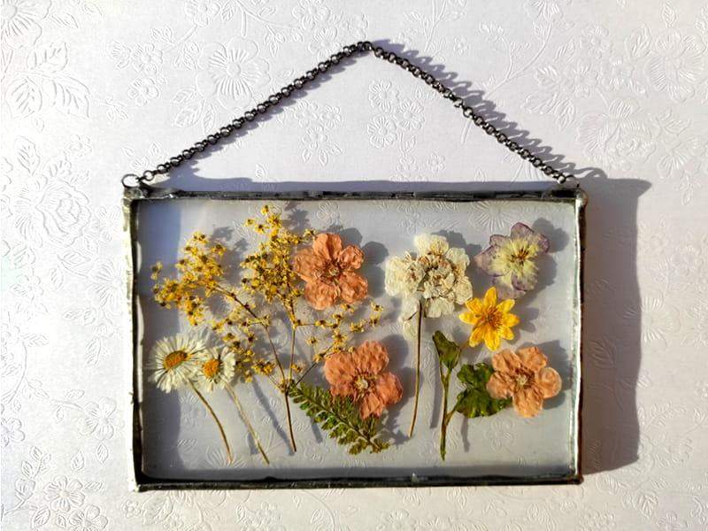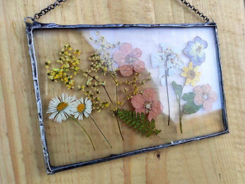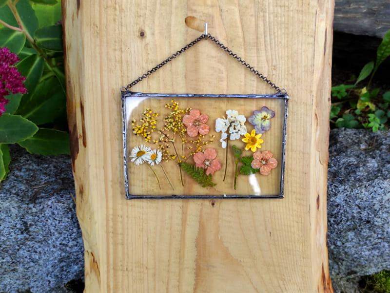 Szklany obraz z suszonymi polnymi kwiatami