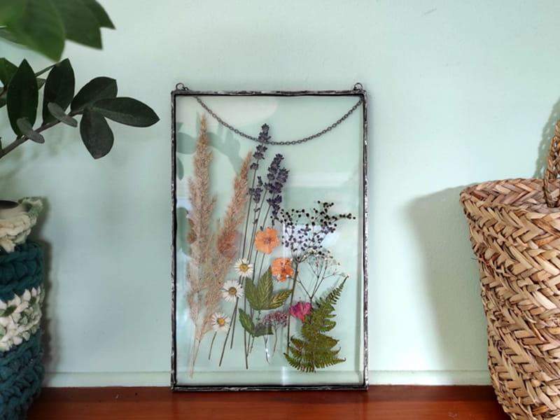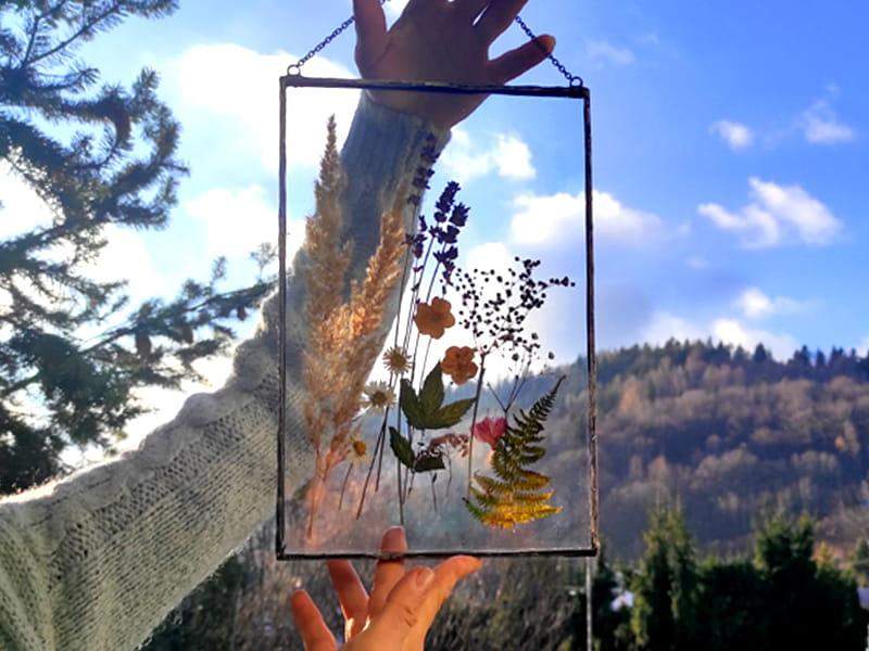 Szklany obraz z prawdziwymi, suszonymi roślinami będzie nietuzinkowym, unikatowym dodatkiem do Twojego wnętrza. Może też być wyjątkowym, niepowtarzalnym prezentem na różne okazje.
