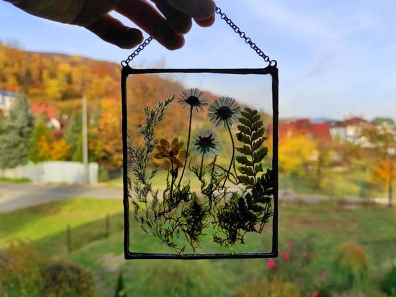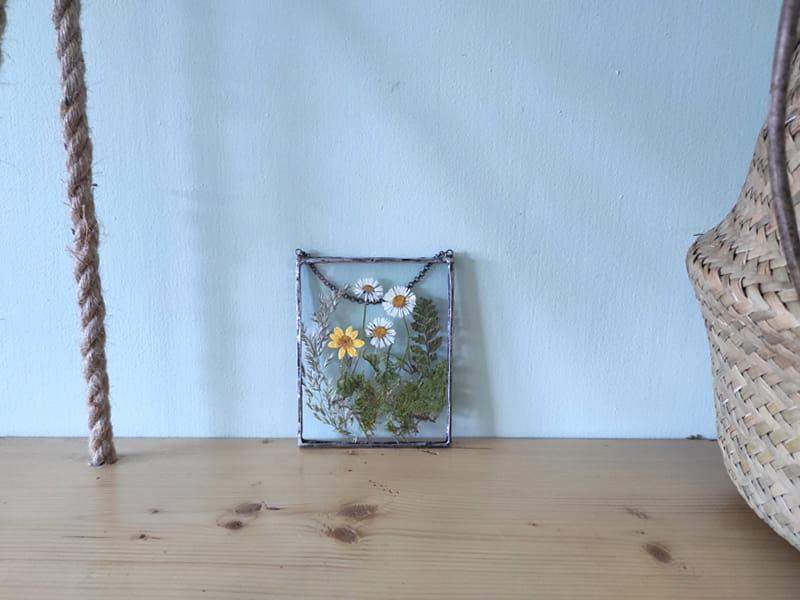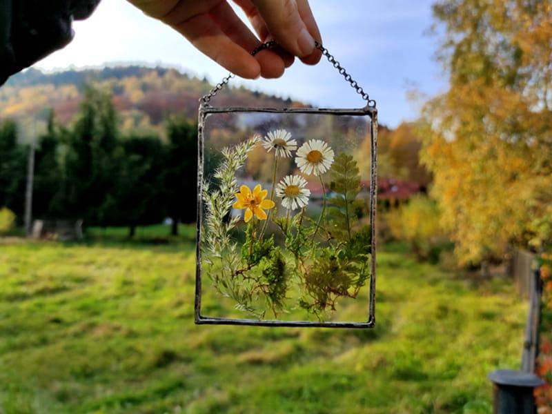 Szklany obraz z prawdziwymi, suszonymi roślinami będzie nietuzinkowym, unikatowym dodatkiem do Twojego wnętrza. Może też być wyjątkowym, niepowtarzalnym prezentem na różne okazje.