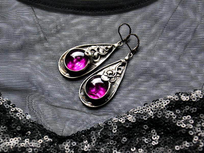 Orientalne kolczyki z fioletem (oprawa w kolorze ciemnego srebra)