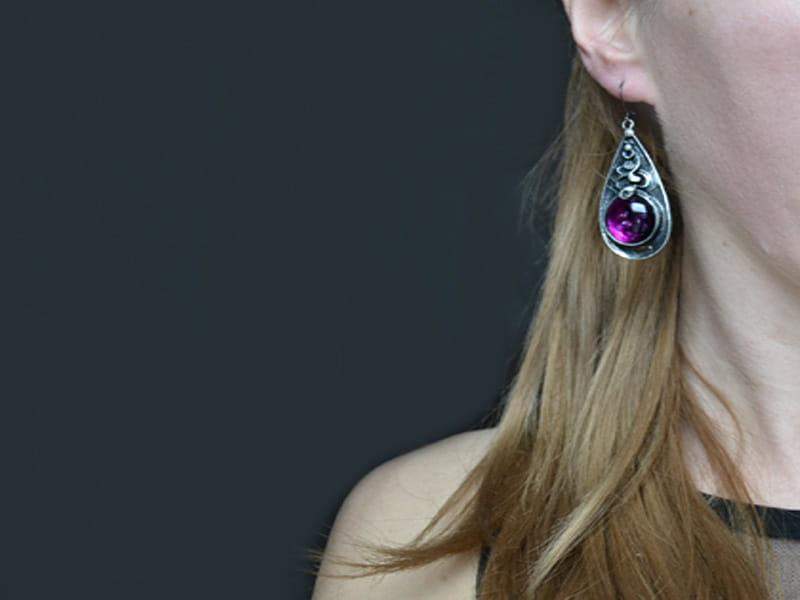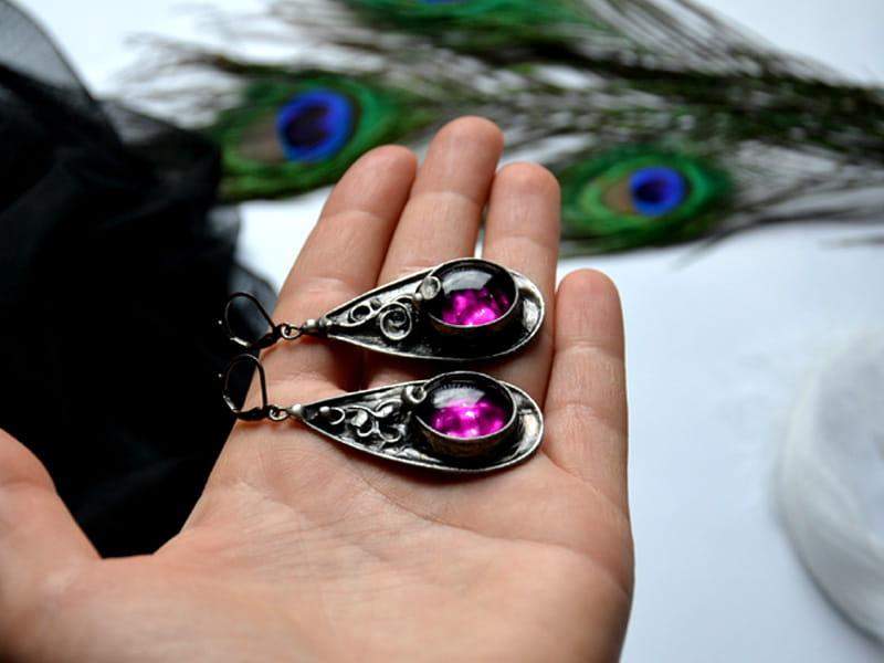 5. Orientalne kolczyki z fioletem (oprawa w kolorze ciemnego srebra)