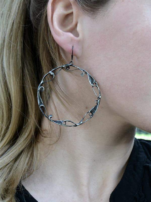 Ornamentalne kolczyki duże koła (oprawa w kolorze ciemnego srebra)