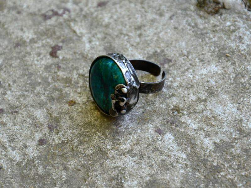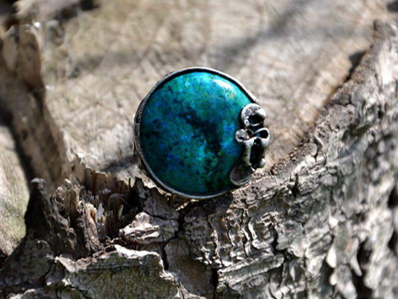 Rustykalny pierścionek z chryzokolą.