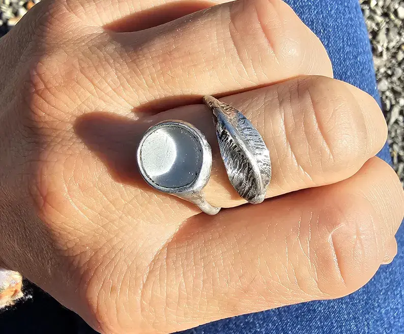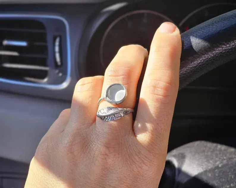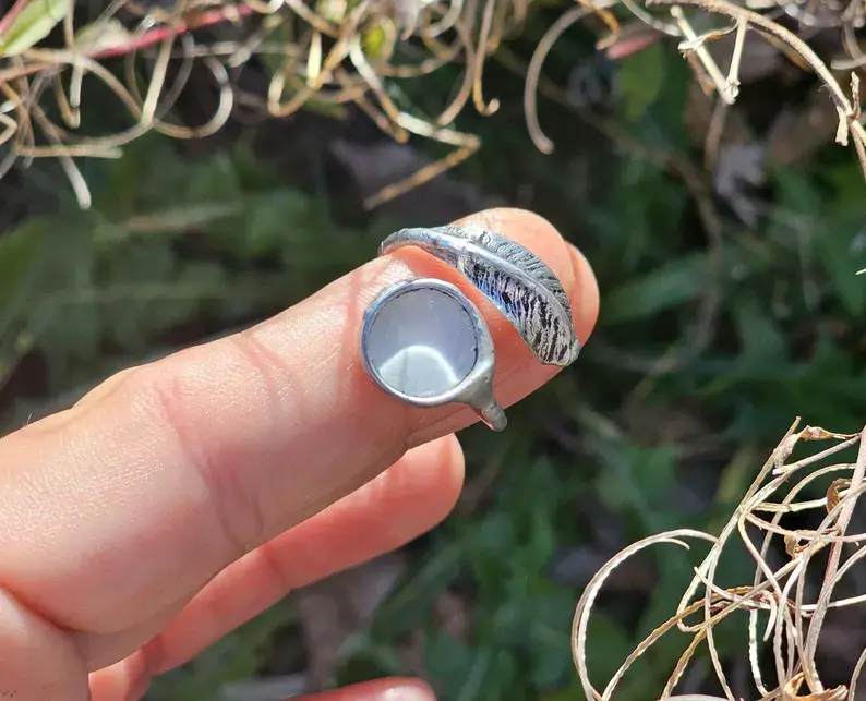 Pierścionek z piórkiem i białym oczkiem