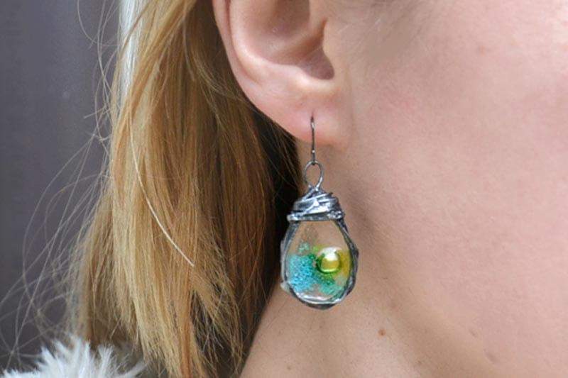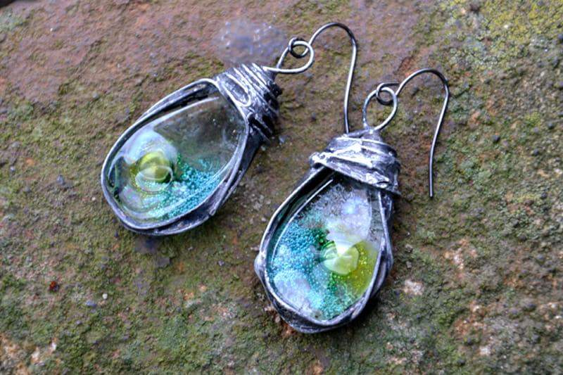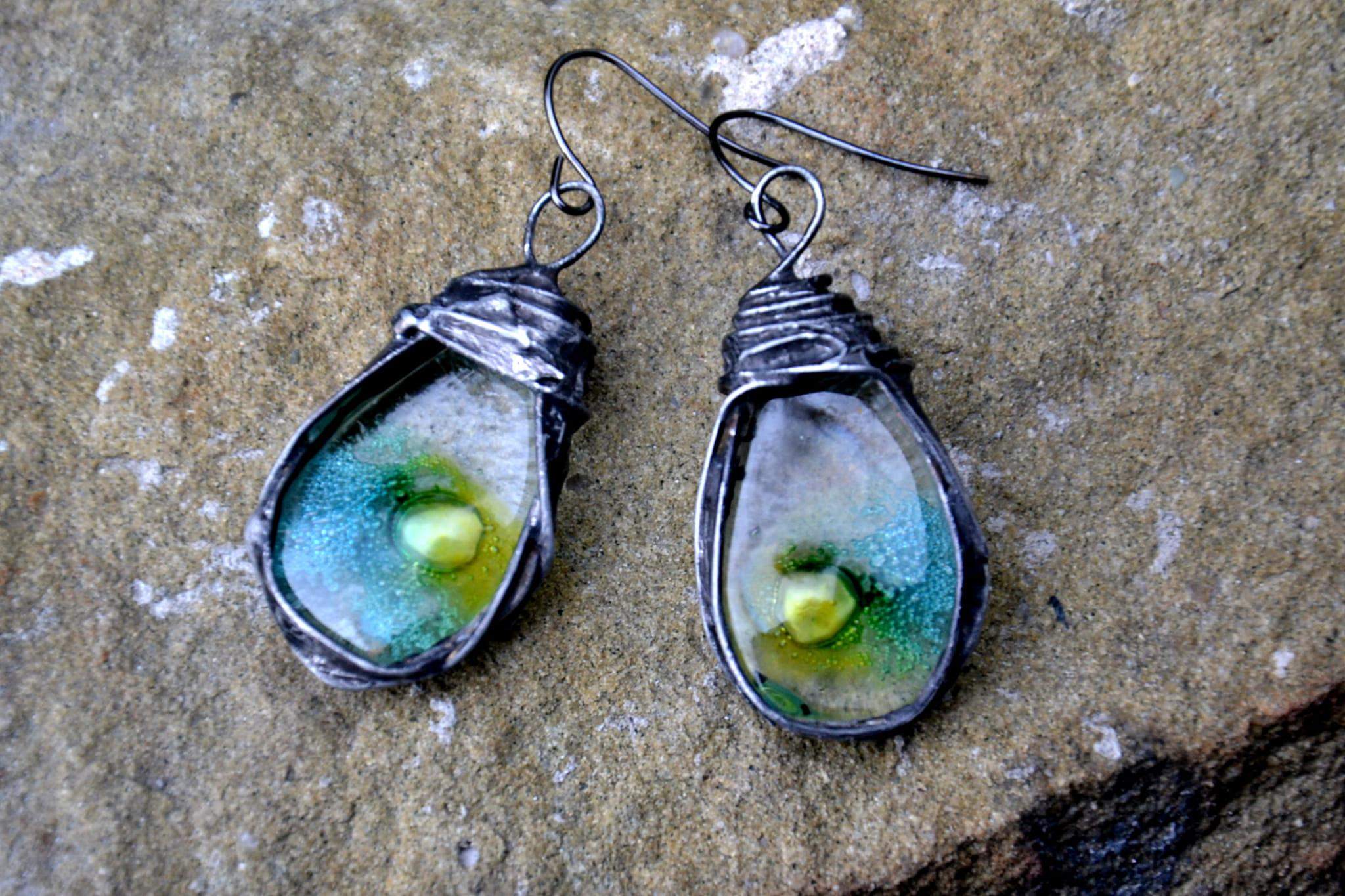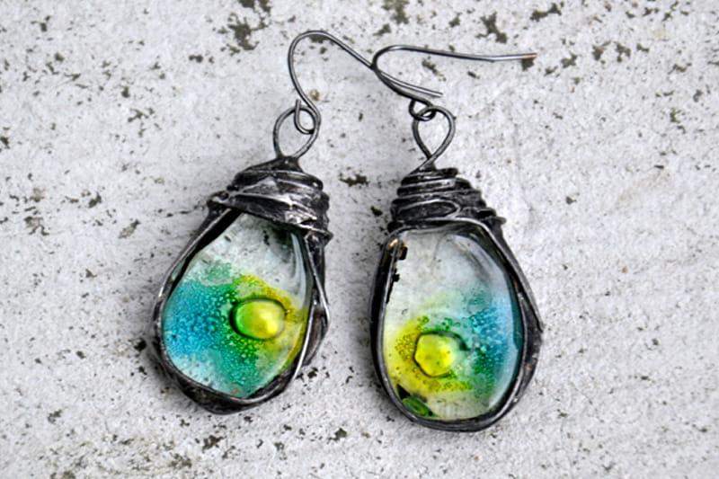 Niepowtarzalne kolczyki ze szkłem.