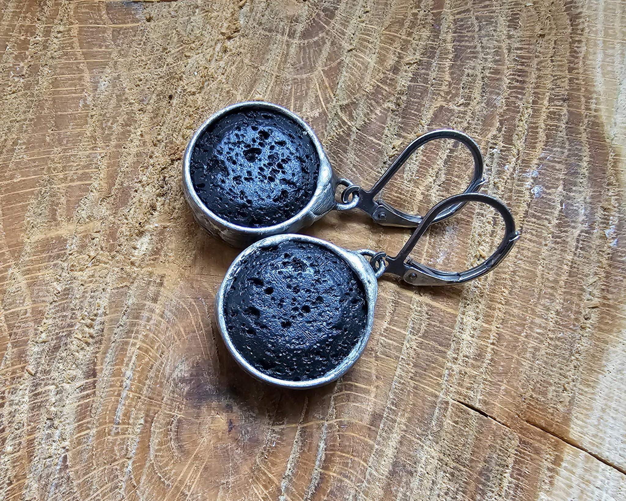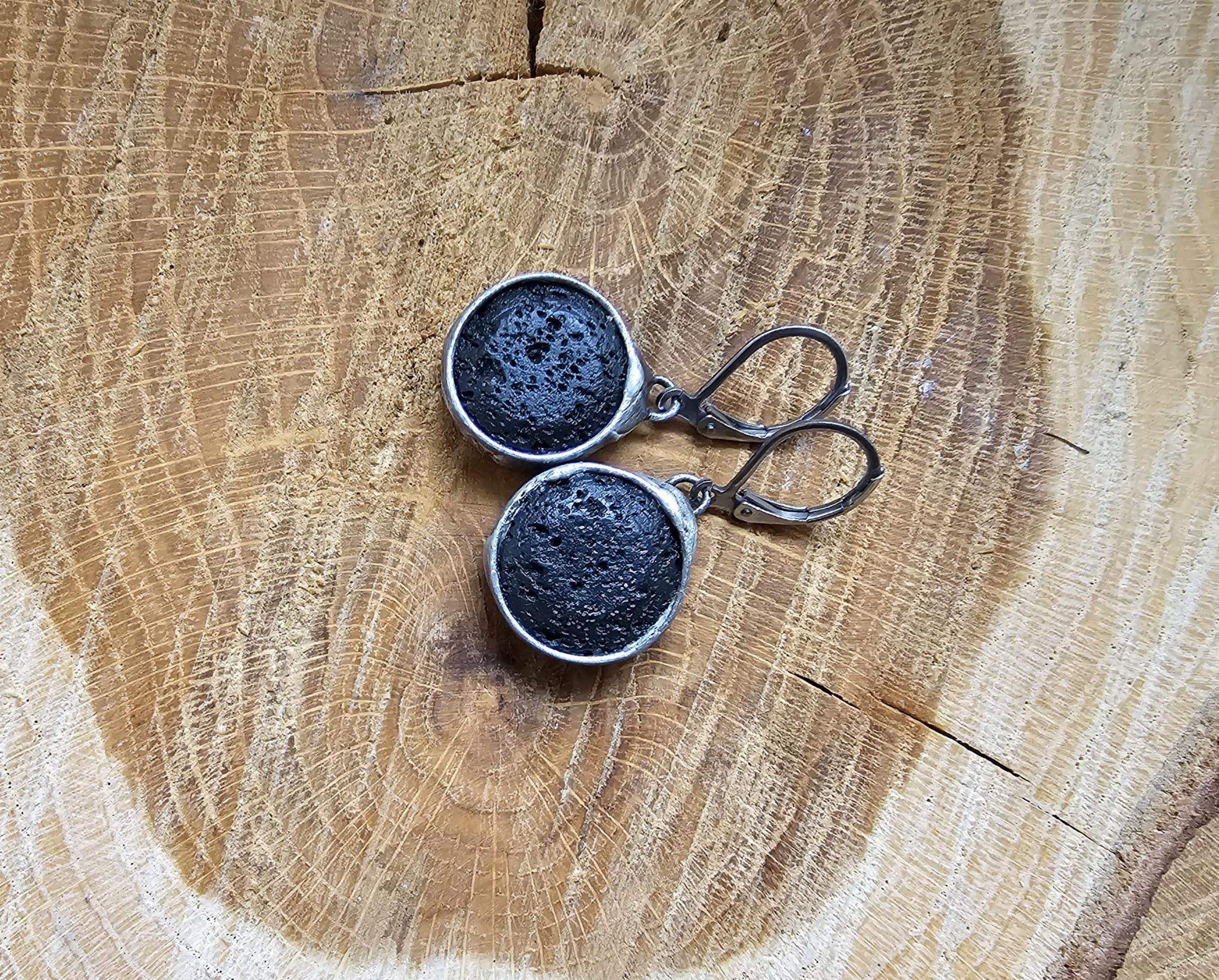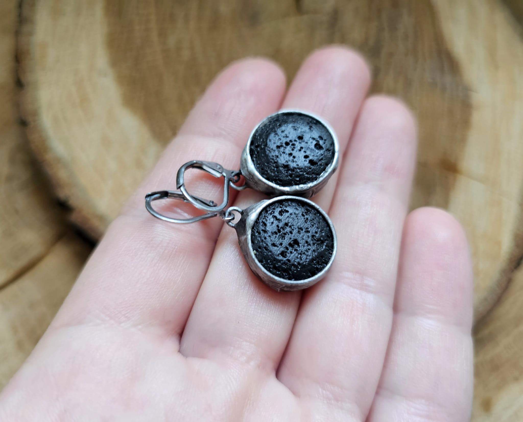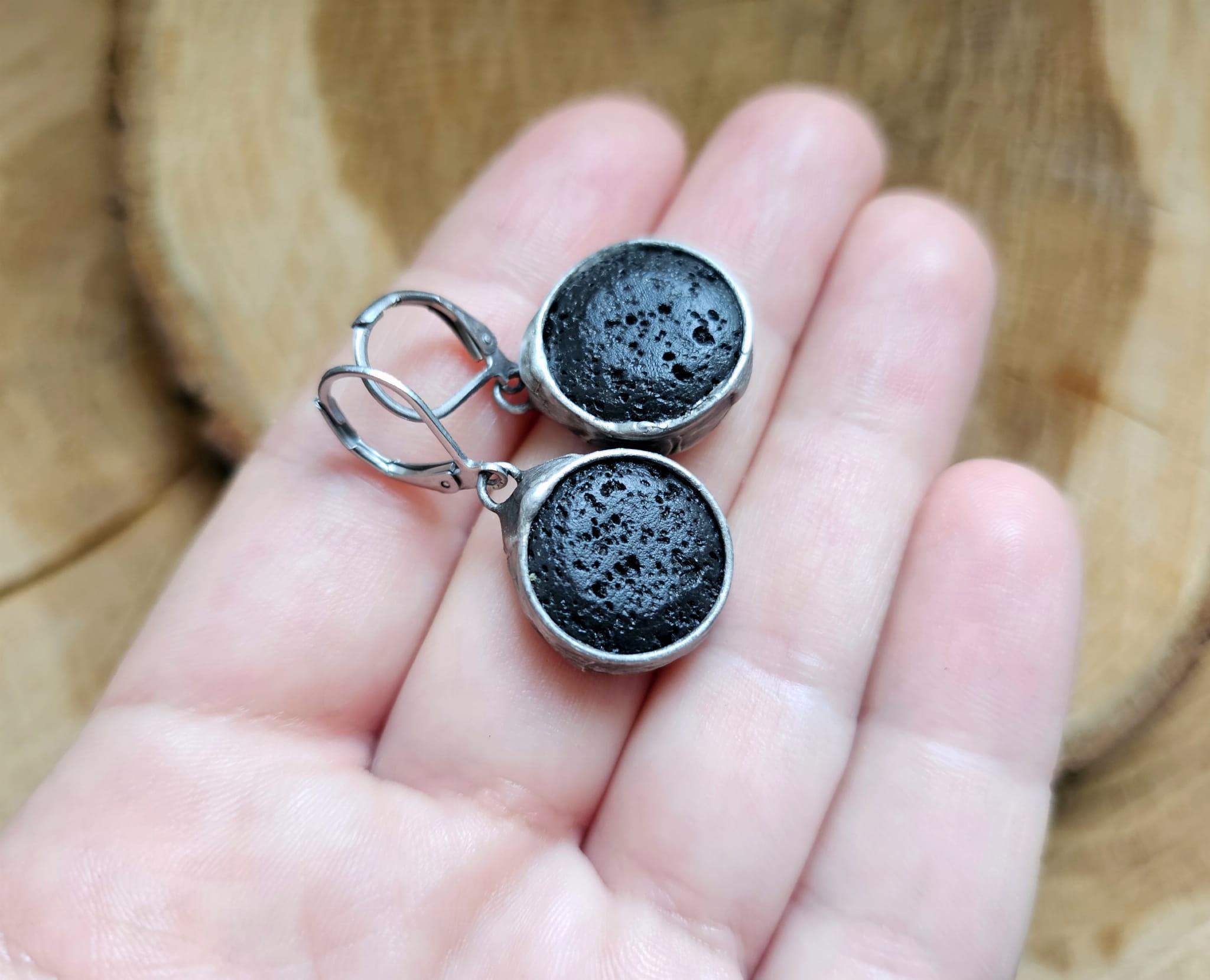 Rustykalne kolczyki z lawą wulkaniczną.