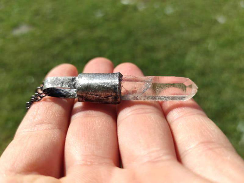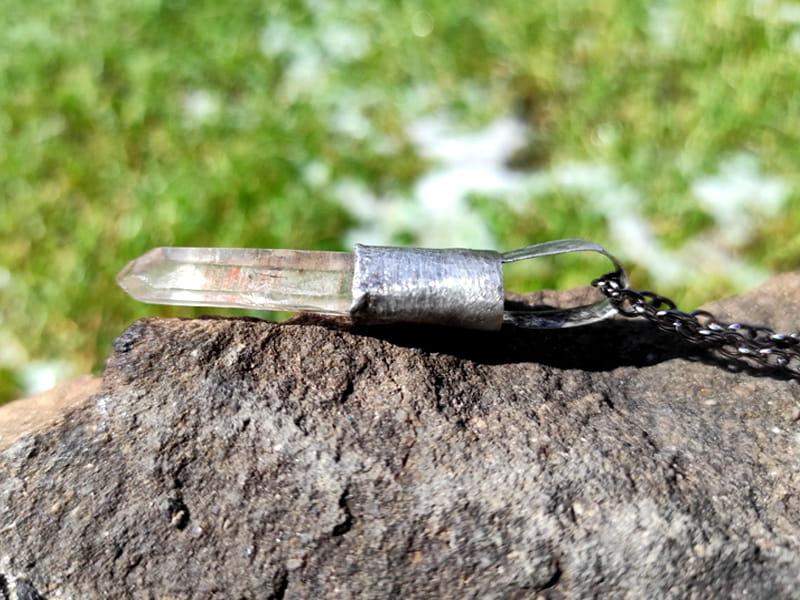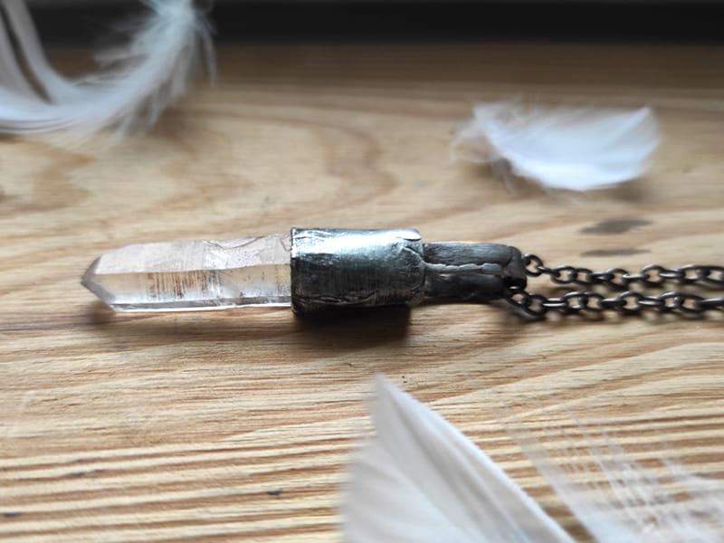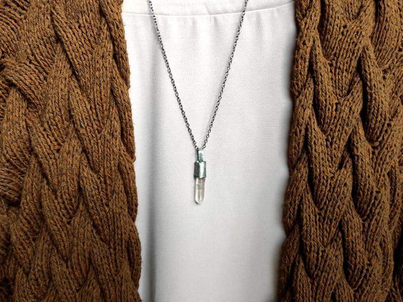 Unikatowy naszyjnik z surowym kryształem górskim.