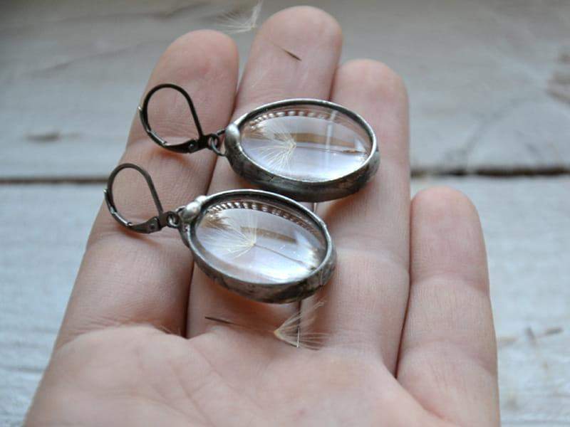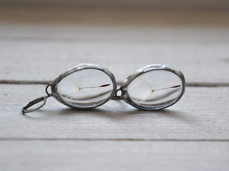 Romantyczne kolczyki z nasionami dmuchawca zamkniętymi w szkle.