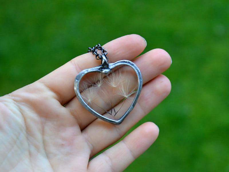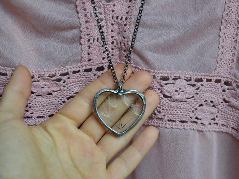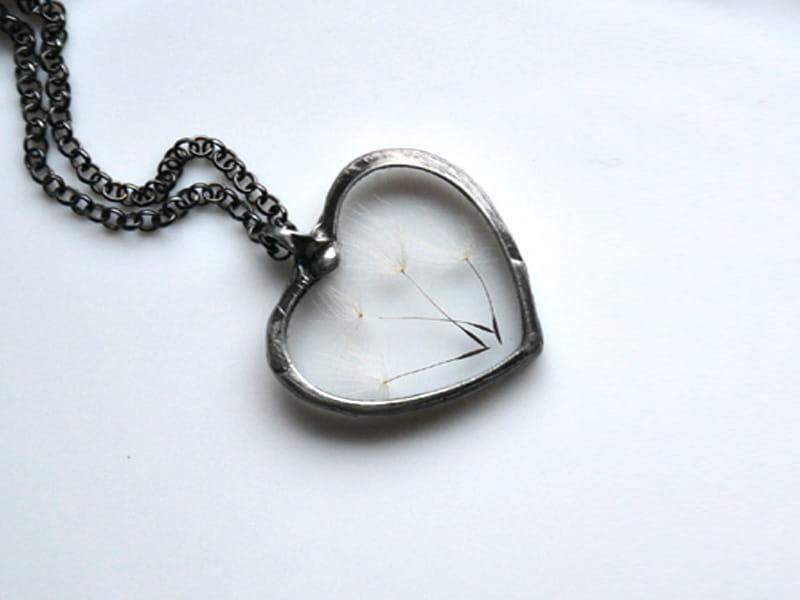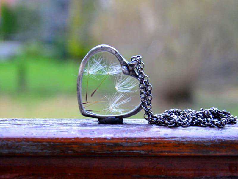 Wisior z zamkniętymi w szkle dmuchawcami.