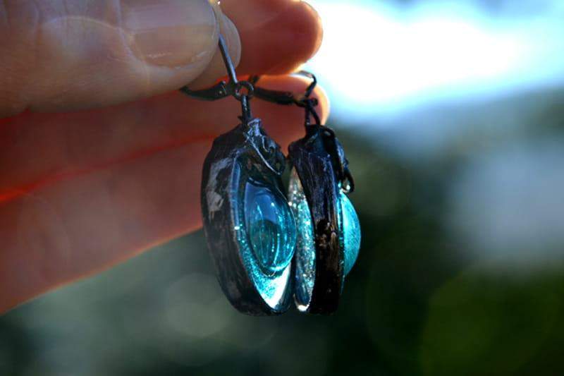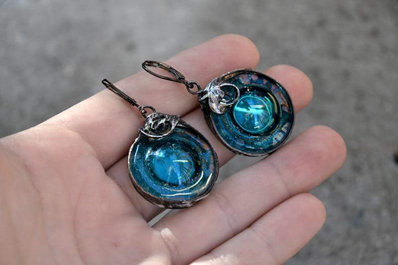Romantyczne kolczyki ze szkłem.